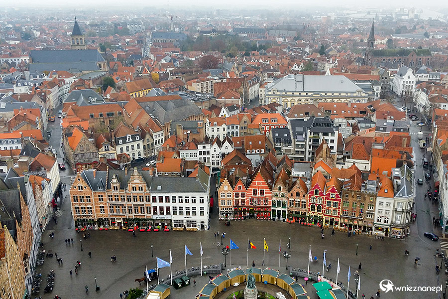 Brugia (Brugge). Widok na miasto i plac Markt z dzwonnicy (Belfort).