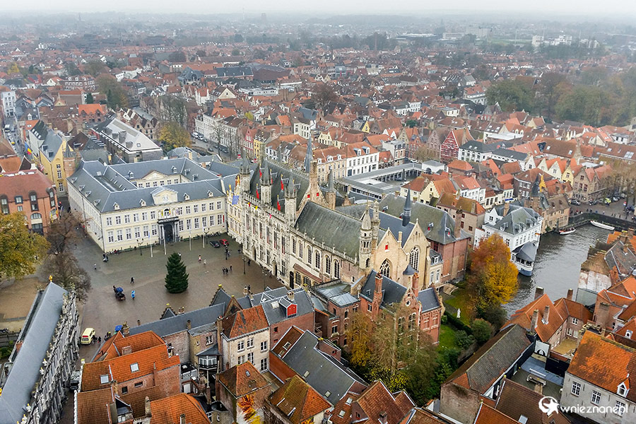 Brugia (Brugge). Widok z dzwonnicy (Belfort) na miasto. Na pierwszym planie plac Burg i Heilig-Bloed Basliek.