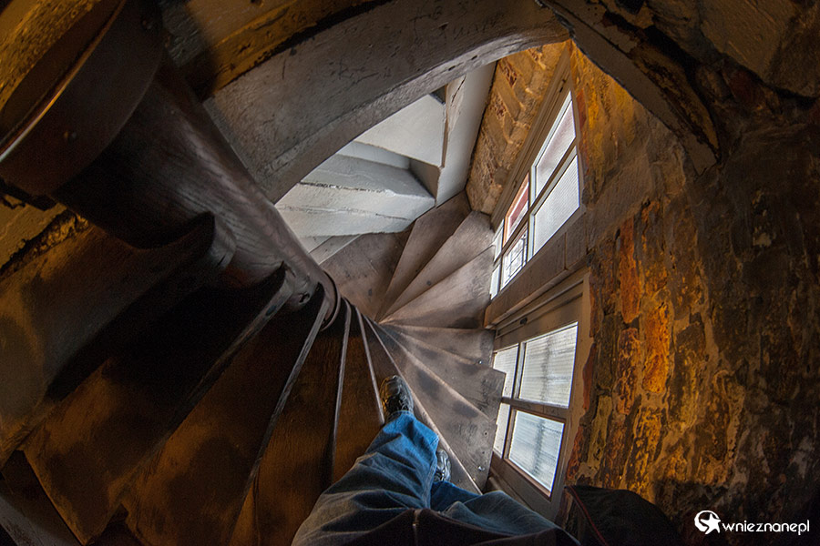 Brugia (Brugge). Schody prowadzące na taras widokowy dzwonnicy (Belfort).