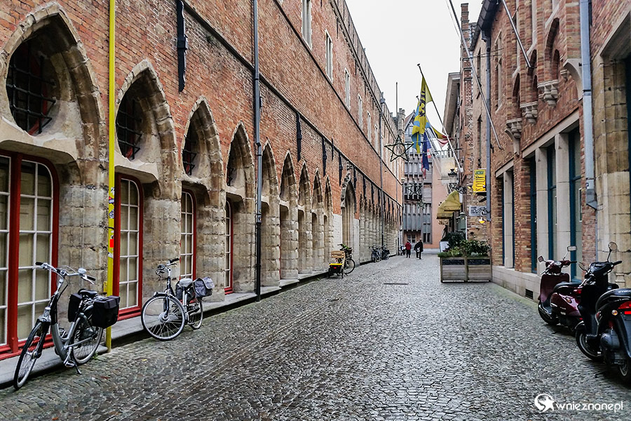 Brugia (Brugge). W mieście jest wiele brukowanych wąskich ulic.