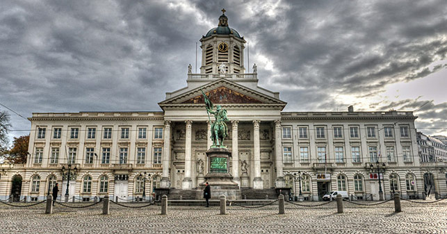Po brukowanym Placu Królewskim pędzą nowoczesne tramwaje. Całość zdominowana jest przez nietypową bryłę kościoła Eglise Saint Jacques sur Coudenberg z XVIII w., zbudowanego w stylu neoklasycystycznym.
