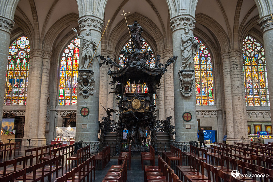 Bruksela. Wnętrze Cathedrale des Saints Michel et Gudule.
