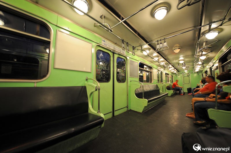 Budapeszt. Jedna z trzech linii metra. Na zdjęciu wnętrze wagonu linii niebieskiej (3).