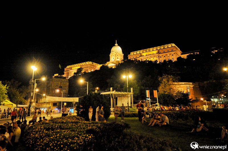 Budapeszt. Oświetlony plac Adama Clarka. W tle Wzgórze Zamkowe.