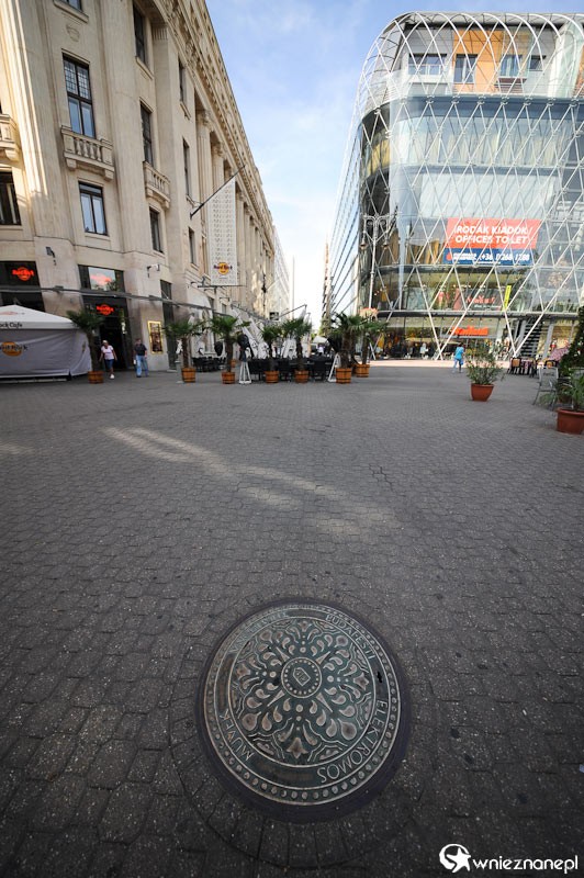 Budapeszt. Ozdobny właz studzienki kanalizacyjnej na Vorosmarty ter.