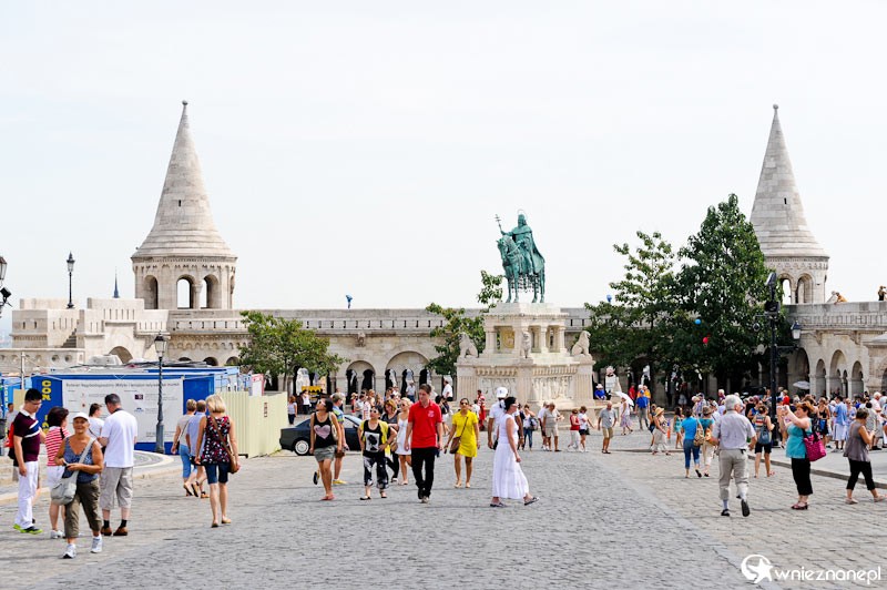 Budapeszt. Plac św. Trójcy na Starym Mieście, w tle Baszta Rybacka i posąg św. Stefana, króla Węgier.