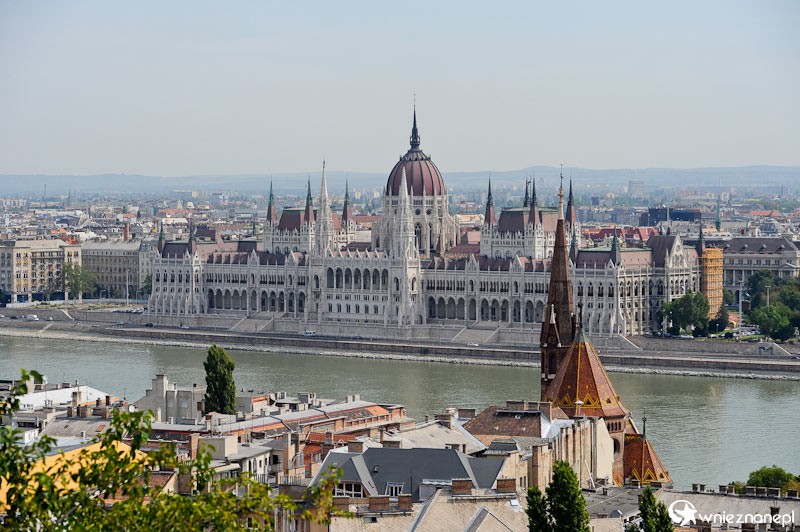 Budapeszt. Imponujący gmach Parlamentu widziany z Baszty Rybackiej na Starym Mieście.