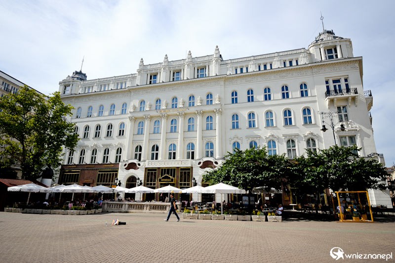 Budapeszt. Vorosmarty ter i budynek, w którym mieści się najsłynniejsza w mieście cukiernia - Gerbeaud.