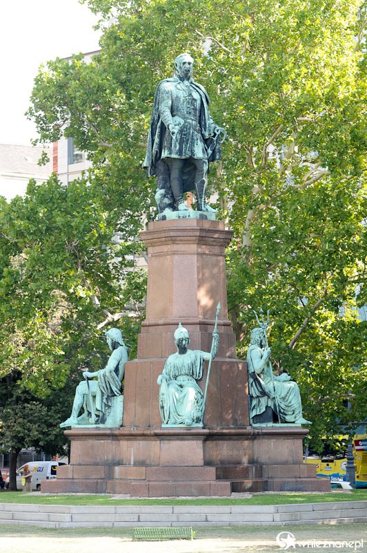 Budapeszt, Vorosmarty ter. Pomnik Mihaly'a Vorosmarty'ego, autora hymnu o świadomości narodowej Węgrów. Pomnik prezentuje go w otoczeniu m.in. chłopa, szlachcica, studenta, matki z dziekiem i pastuszka, którzy symbolizują naród węgierski połączony wspólną pieśnią.
