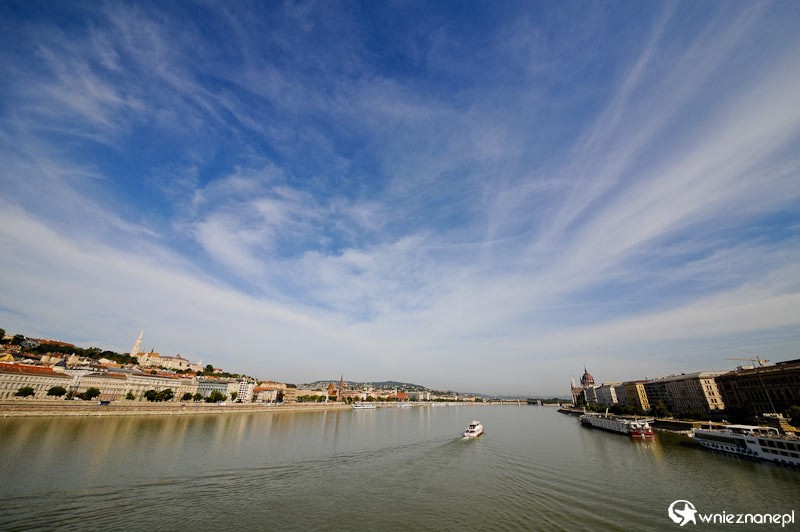 Budapeszt. Panorama nabrzeża Dunaju widziana z Mostu Łańcuchowego.