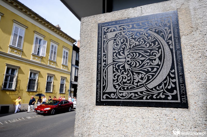 Budapeszt. Tablica na Disz ter na Starym Mieście.
