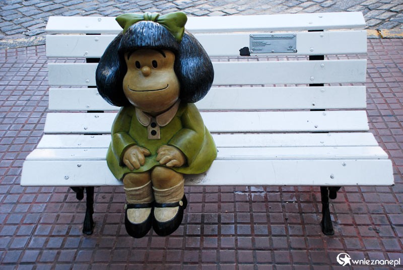 Buenos Aires. San Telmo. Mafalda, czyli bohaterka argentyńskich komiksów i jej ławeczka.
