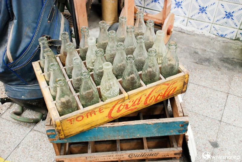 Buenos Aires. San Telmo. Stare butelki po Coca-Coli w hali targowej.