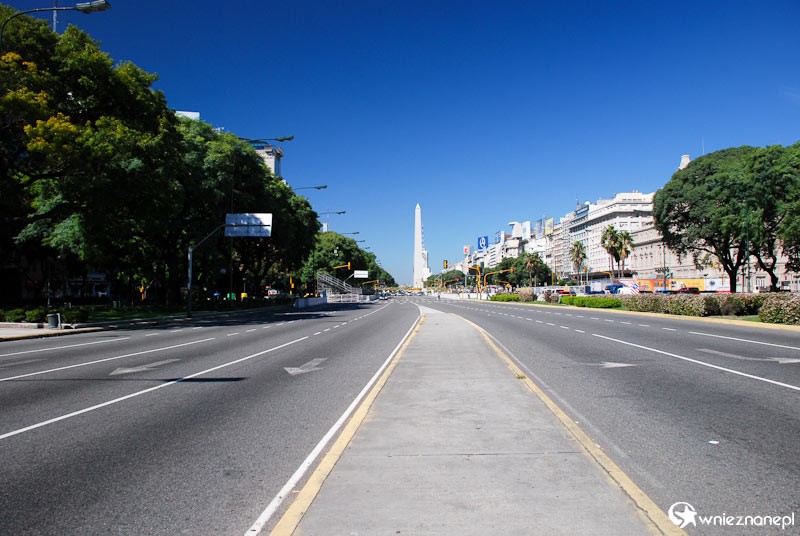 Buenos Aires. Avenida 9 de Julio. Najszersza ulica świata, a w tle słynny El Obelisco.
