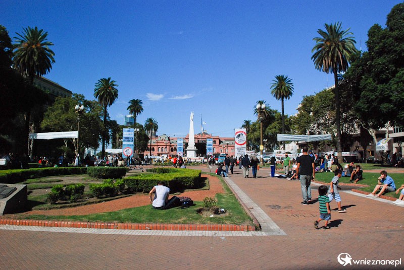 Buenos Aires. Plaza de Mayo w dniu manifestacji tj. 24 marca 2012r. Liczne transparenty, scena, a w tle Casa Rosada.