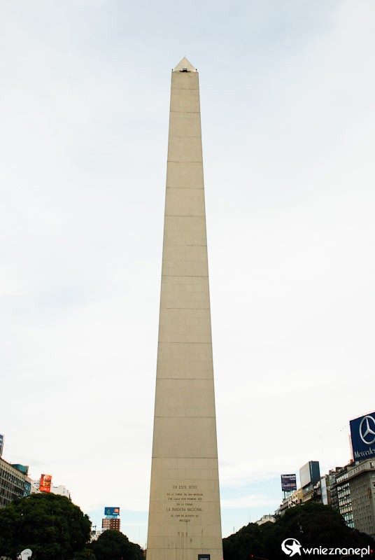 Buenos Aires. El Obelisco, czyli jeden z symboli miasta. Wybudowany w 1936 roku mierzy 67 metrów wysokości.