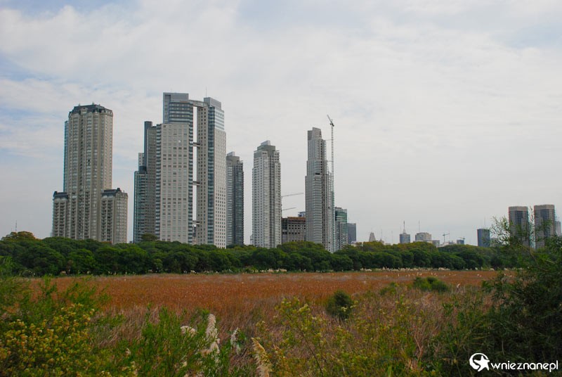 Buenos Aires. Puerto Madero. Widok na wieżowce z Reserva Ecologica Costanera Sud. Jedno z lepszych miejsc w mieście na rowerową przejażdżkę lub bieganie.