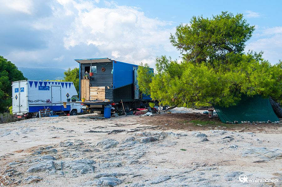 Chalkidiki. Kemping w okolicy Orange Beach na półwyspie Sithonia.