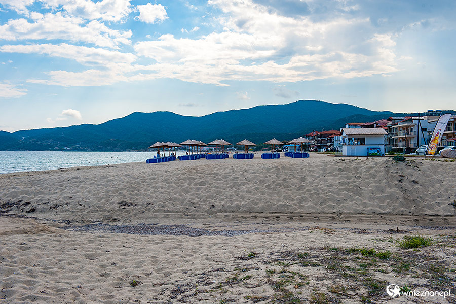 Chalkidiki. Plaża Armenisti z kempingiem na półwyspie Sithonia.