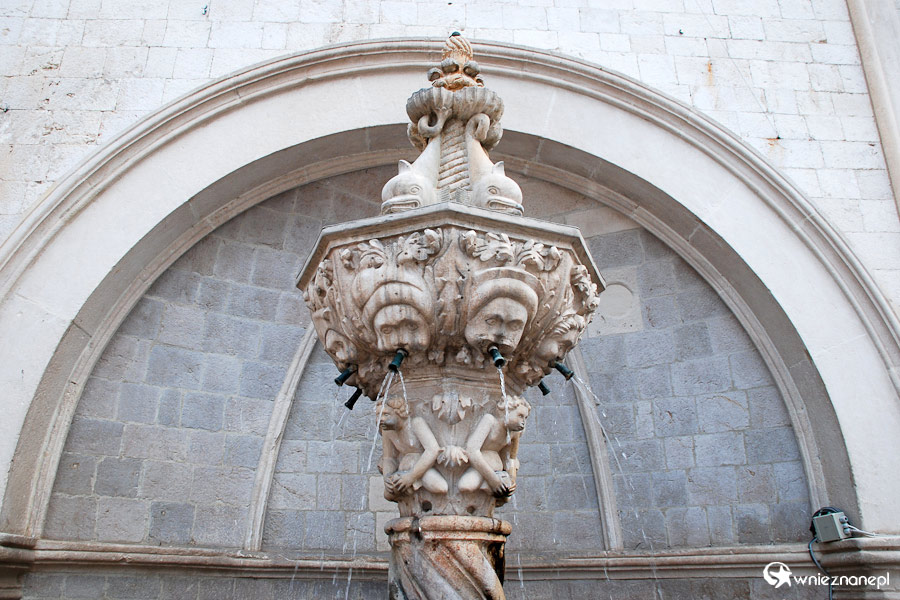 Chorwacja. Skromne, ale pięknie zdobione fontanny na starówce w Dubrowniku.