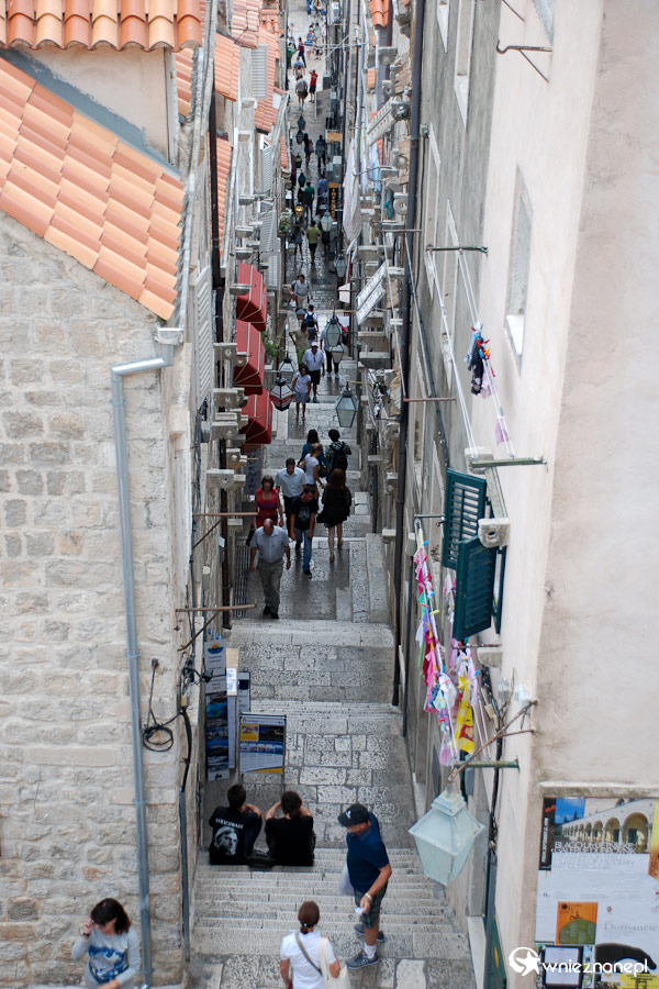 Chorwacja. Kamienne schodki i wąskie uliczki. Piękny i typowy widok dla starówki w Dubrowniku.