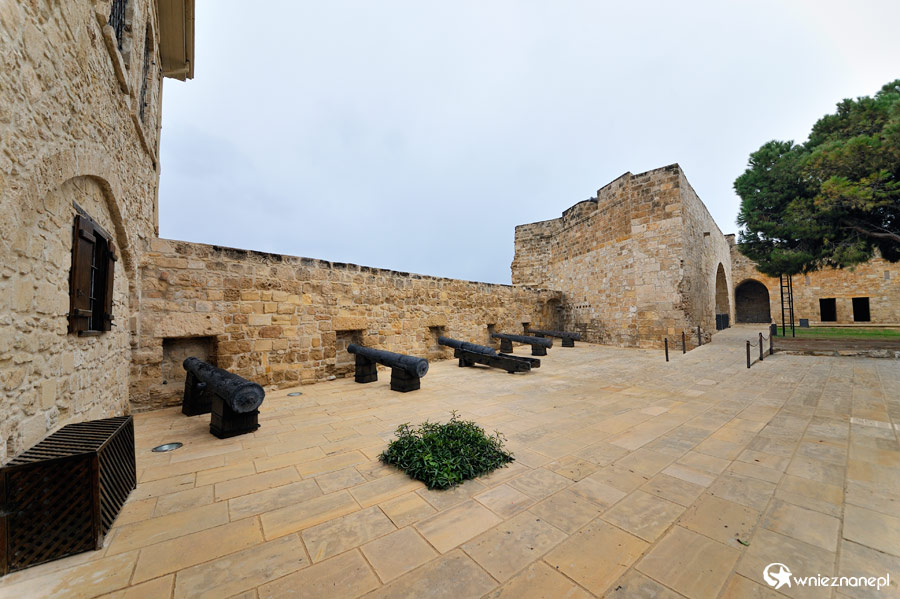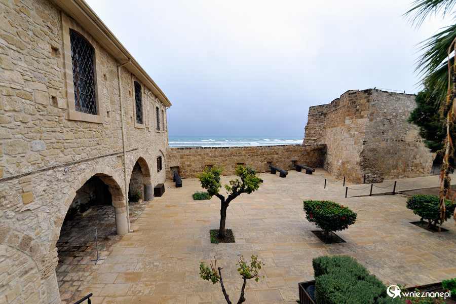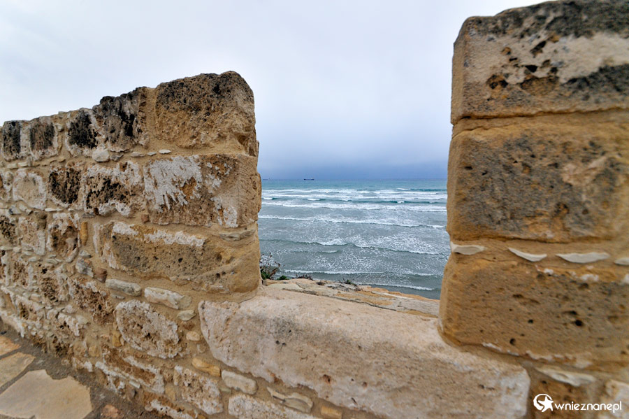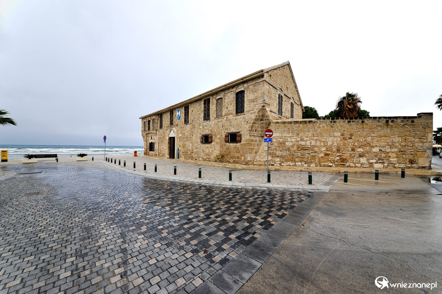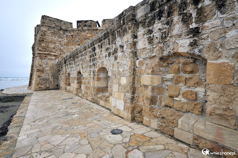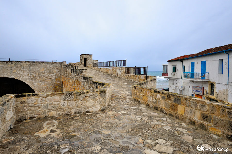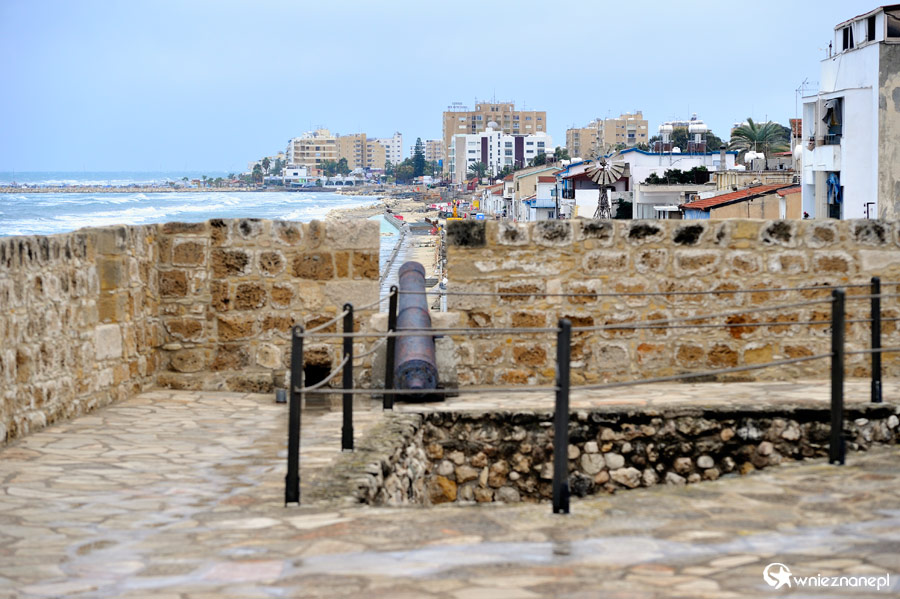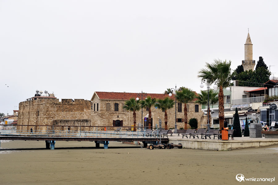 Cypr zimą. Fort, plaża i molo w Larnace.