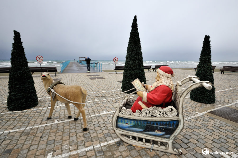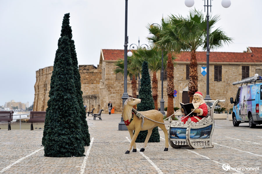 Cypr zimą. Świąteczne dekoracje na promenadzie w Larnace.