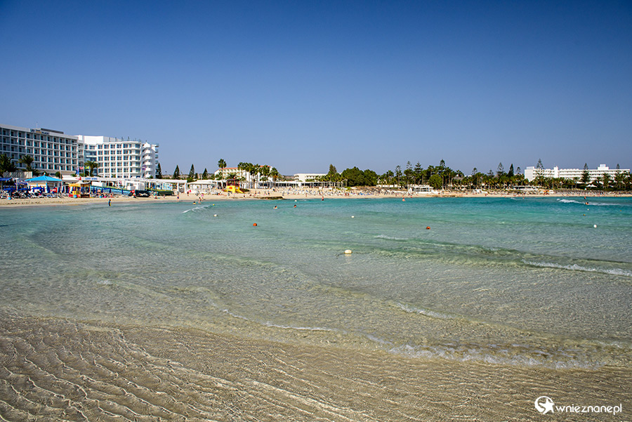 Cypr jesienią. W listopadzie poziom wody przy Nissi Beach pozwala na przejście na położoną tuż przy brzegu wysepkę.