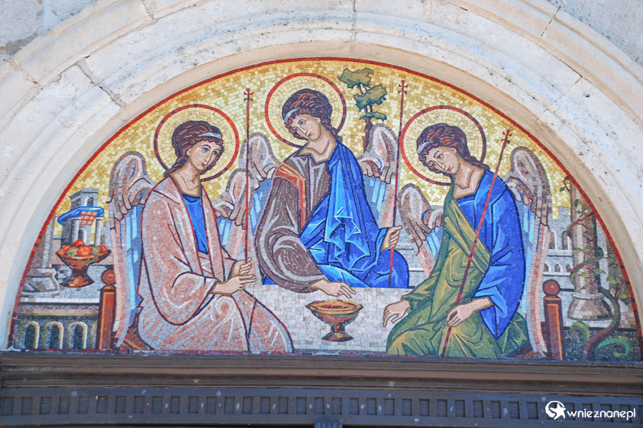 Czarnogóra. Budva. Mozaika nad wejściem do kościoła św. Trójcy.