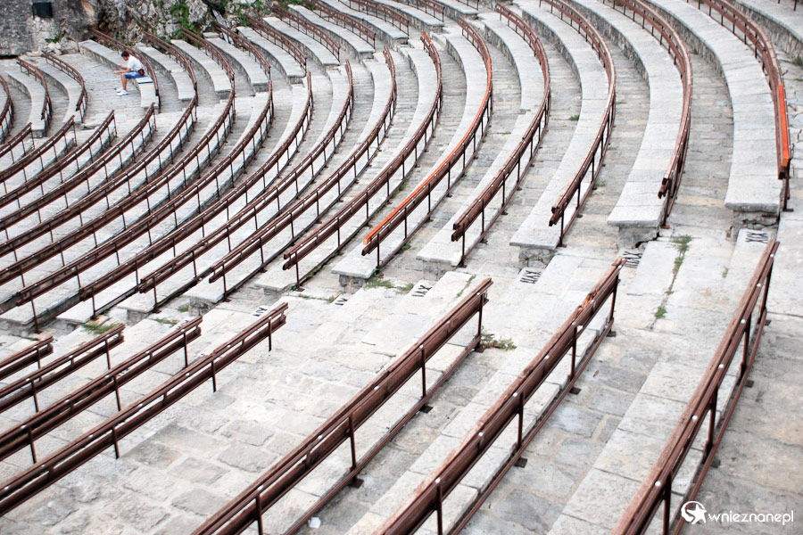 Czarnogóra. Herceg Novi. Kamienne ławy w twierdzy Kanli kula.