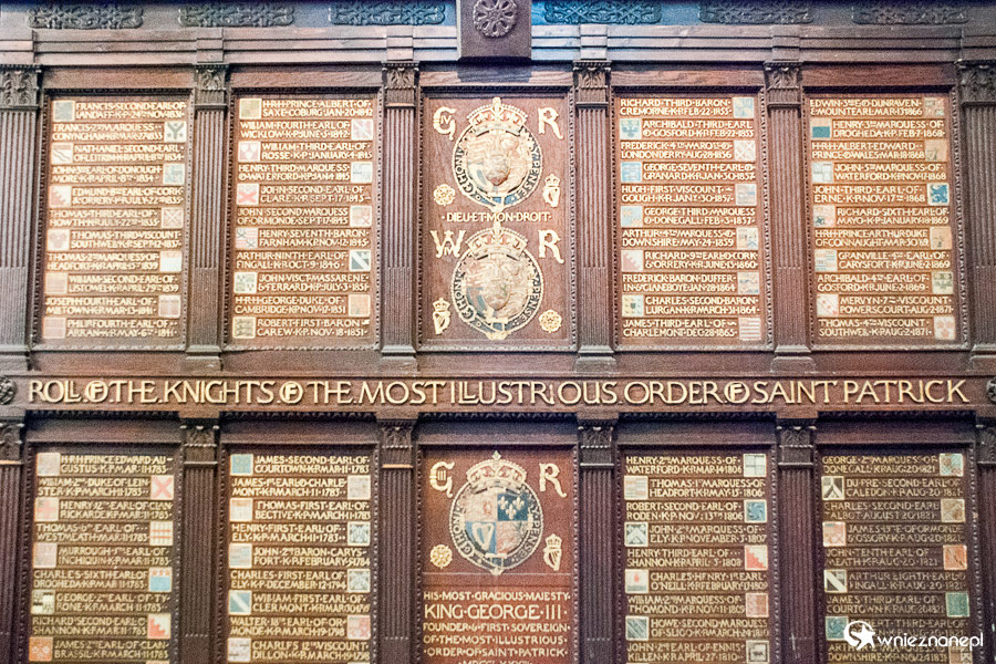 Dublin. St. Patrick's Cathedral. Drewniana tablica upamiętniająca rycerzy Zakonu św. Patryka.