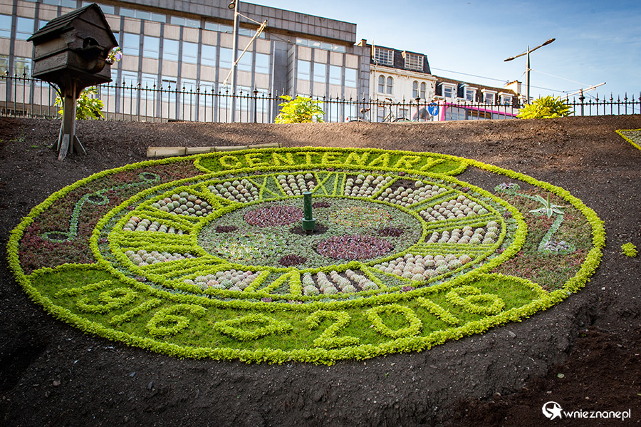Edynburg. Kwiatowy zegar na terenie ogrodów Princes Street Gardens.