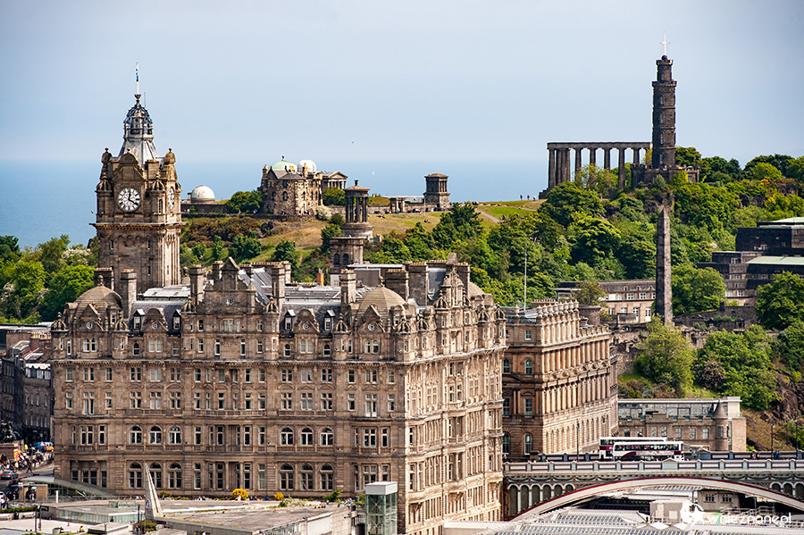 Edynburg. Widok na miasto z Zamku w Edynburgu (Edinburgh Castle) - Calton Hill.