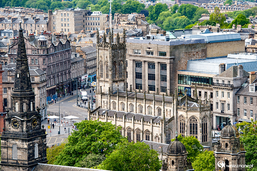 Edynburg. Panorama miasta widziana z Zamku (Edinburgh Castle). W środku St. John's Episcopal Church. - foto: wnieznane.pl