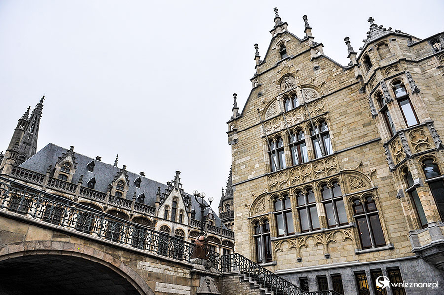 Gandawa (Gent). Widok z dzwonnicy (Belfort en Lakenhalle) na budunek ratusza (Stadhuis).