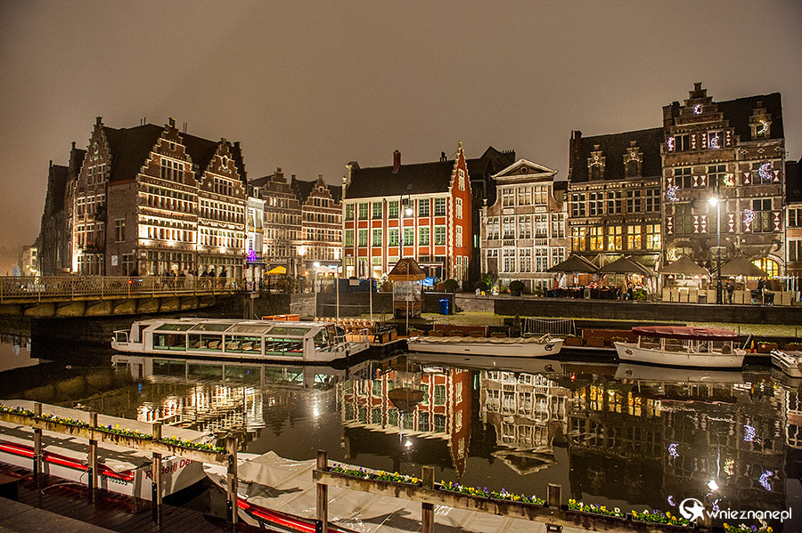Gandawa (Gent) nocą. Wspaniała panorama rzeki Leie (Lys) i ulic Korenlei i Graslei. - foto: wnieznane.pl