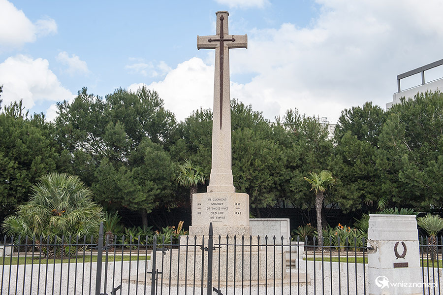 Gibraltar. Pomnik Cross of Sacrifice (Krzyż Poświęcenia, Krzyż Ofiar). Za nim znajduje się Gibraltar Memorial - miejsce pamięci. Upamiętnia 91 lotników i żołnierzy, którzy zginęli w latach 1939/45 i zostali pochowani w morzu.