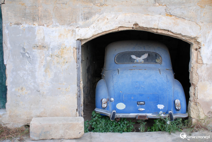 Gozo. Nadur. Sprytnie ukryte auto w jednym z budynków.