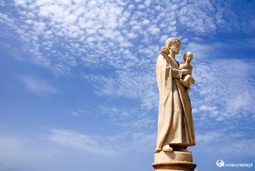 Gozo. Ta' Pinu. Rzeźba zdobiąca plac w pobliżu świątyni.