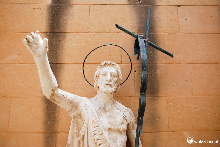 Gozo. Xewkija. Niszczejąca rzeźba Jezusa w pobliżu kopuły kościoła św. Jana Chrzciciela.