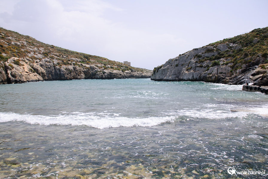 Gozo. Mgarr Ix-Xini. Kamienista plaża w zatoczce Mgarr Ix-Xini.