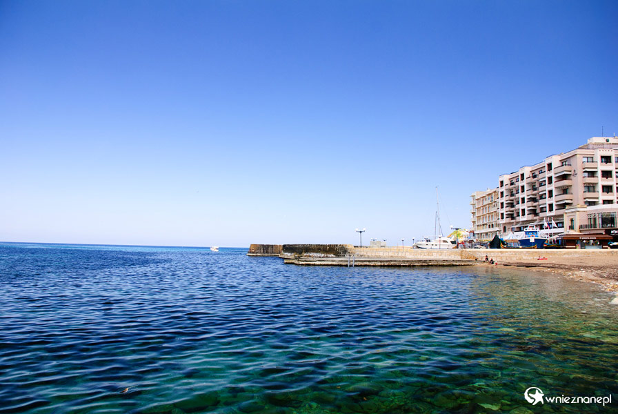 Gozo. Marsalforn. Miejska plaża nie należy do największych.