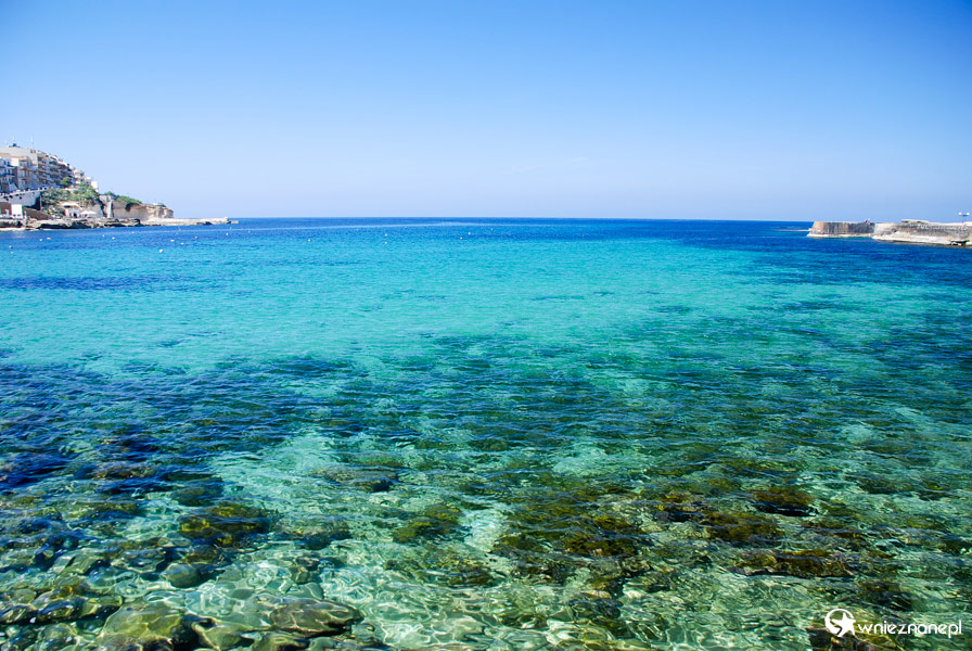 Gozo. Marsalforn. Nieskazitelnie czysta woda obmywa Marsalforn.