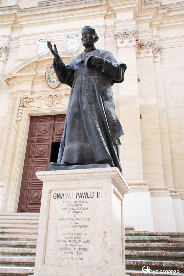 Gozo. Victoria. Pomnik św. Jana Pawła II przed katedrą Wniebowzięcia NMP.