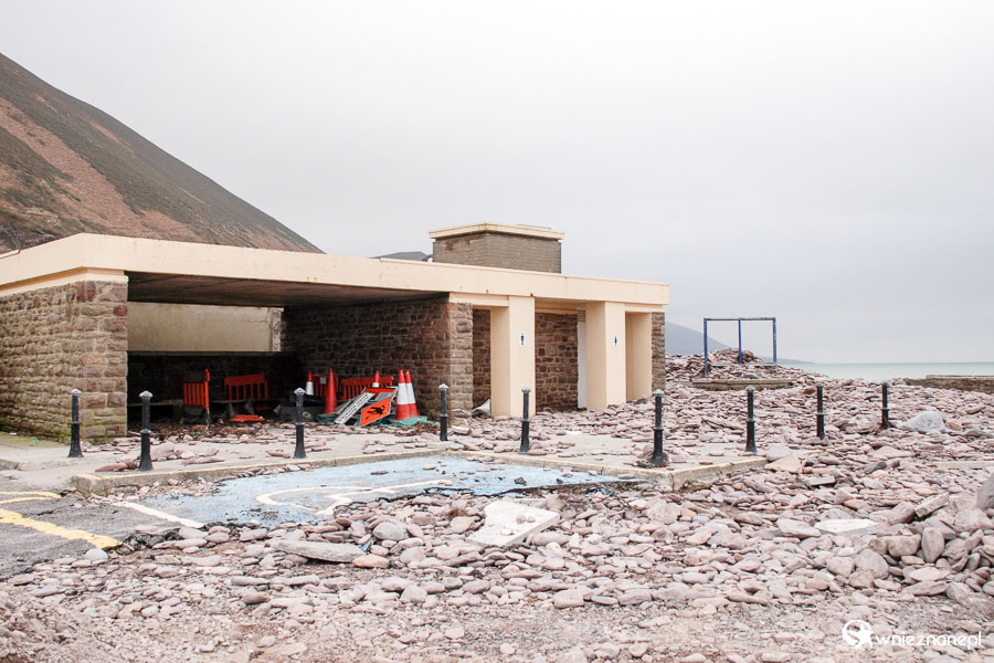 Irlandia. Zniszczony budynek na plaży Rossbeigh w Glenbeigh.