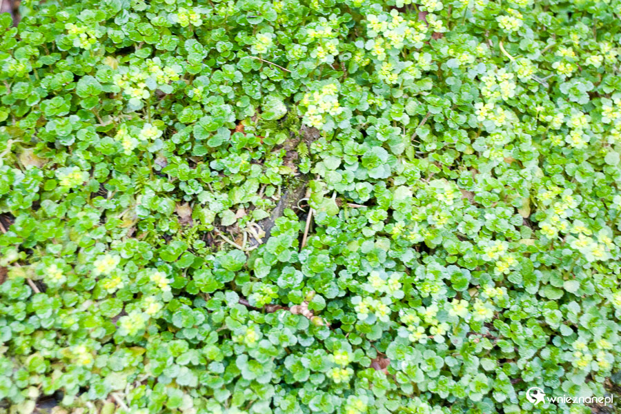 Irlandia. Niezliczona ilość koniczynek w pobliżu wodospadu Torc.