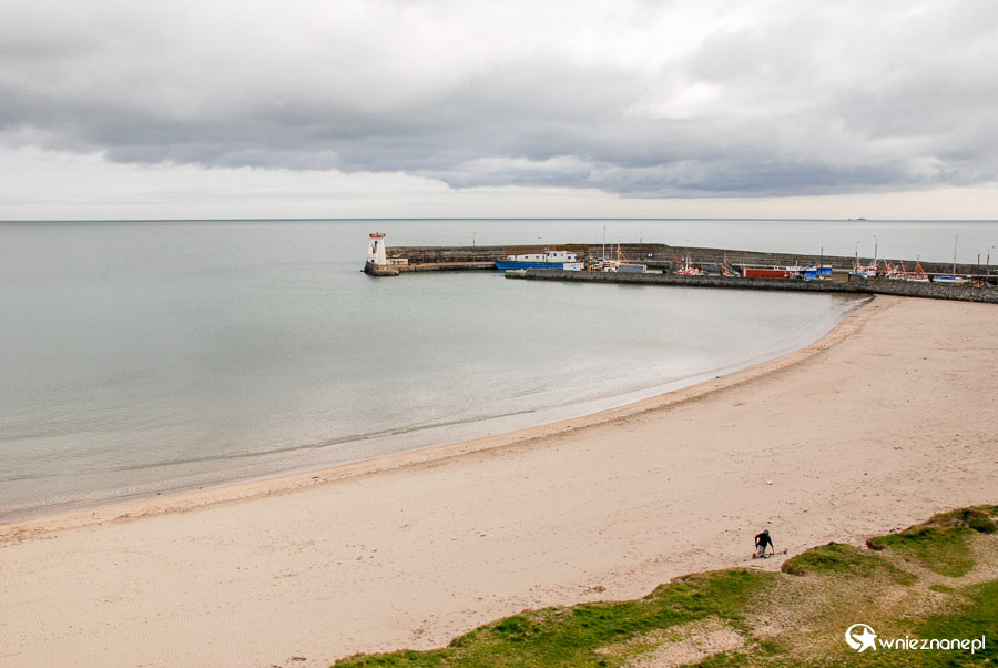 Irlandia. Piaszczysta plaża widziana z... peronu w Balbriggan.