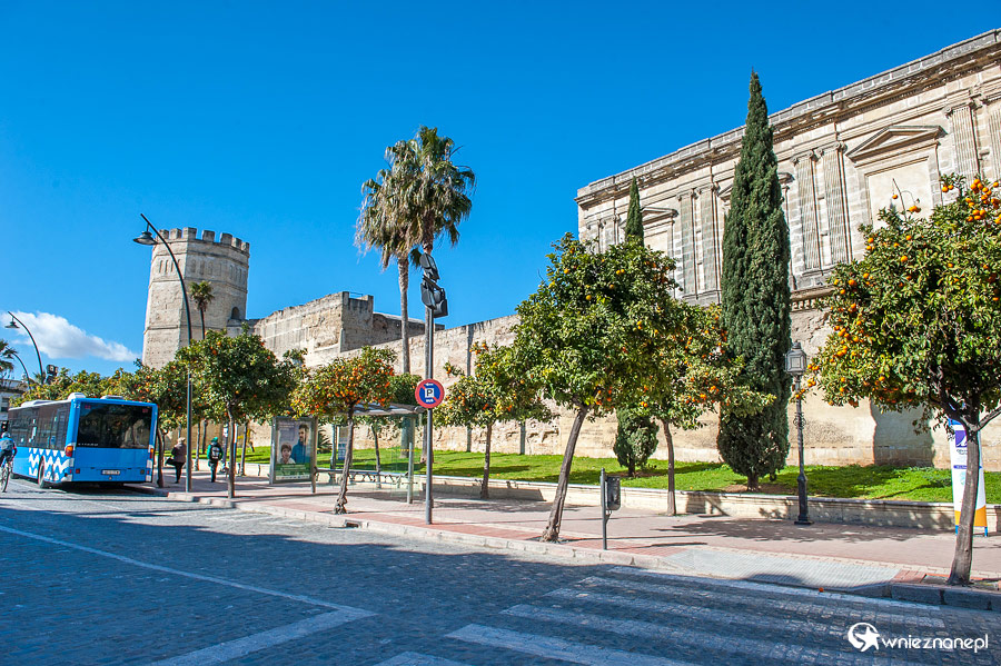 Jerez de la Frontera. Drzewka pomarańczowe przy Alcazarze.