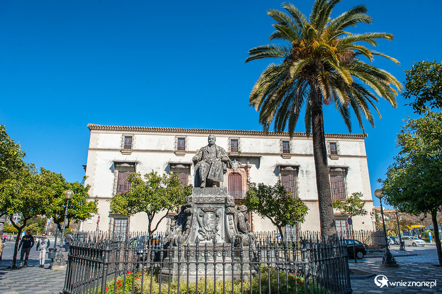 Jerez de la Frontera. Pomnik i pałac przy Plaza del Mamelon.