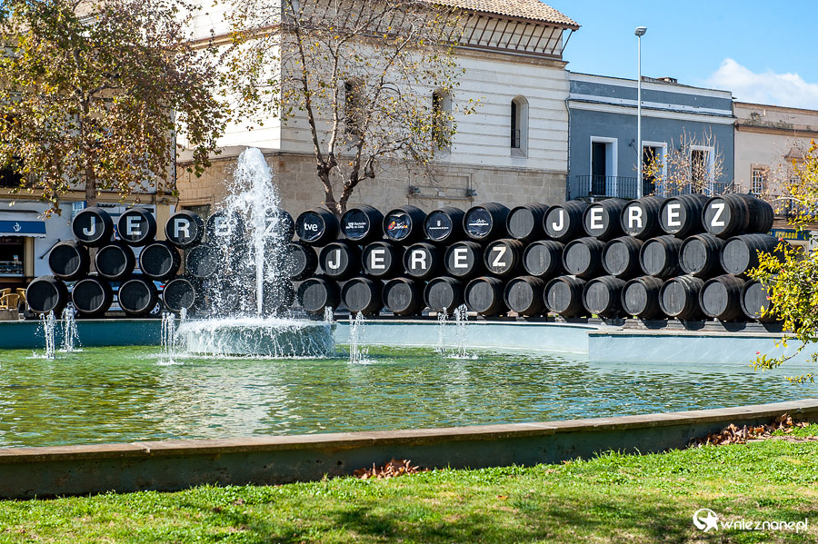 Jerez de la Frontera. Beczki przy Plaza del Mamelon przypominają o winiarskich tradycjach miasta.